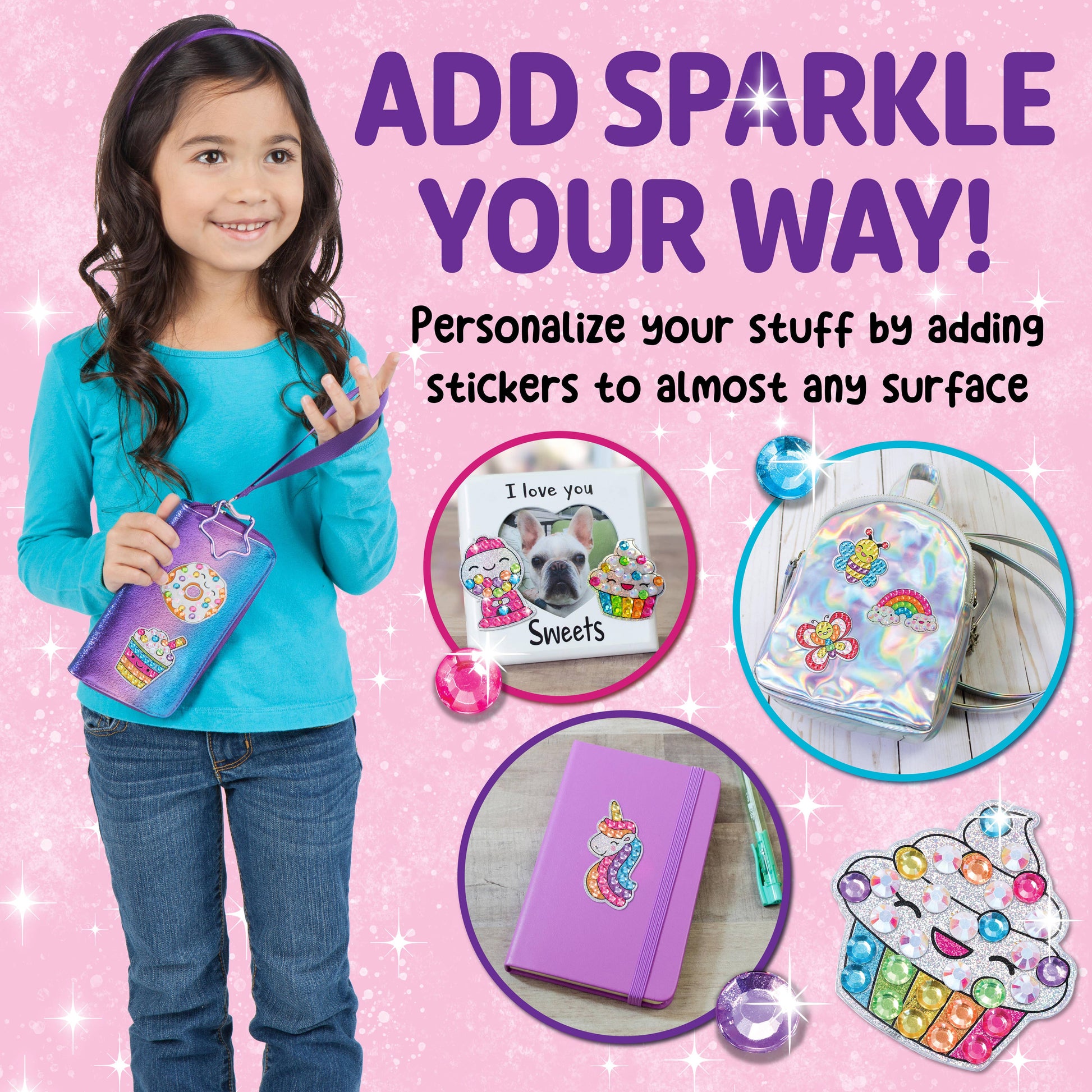 Make 8 stickers using the diamond painting technique and BIG gems.